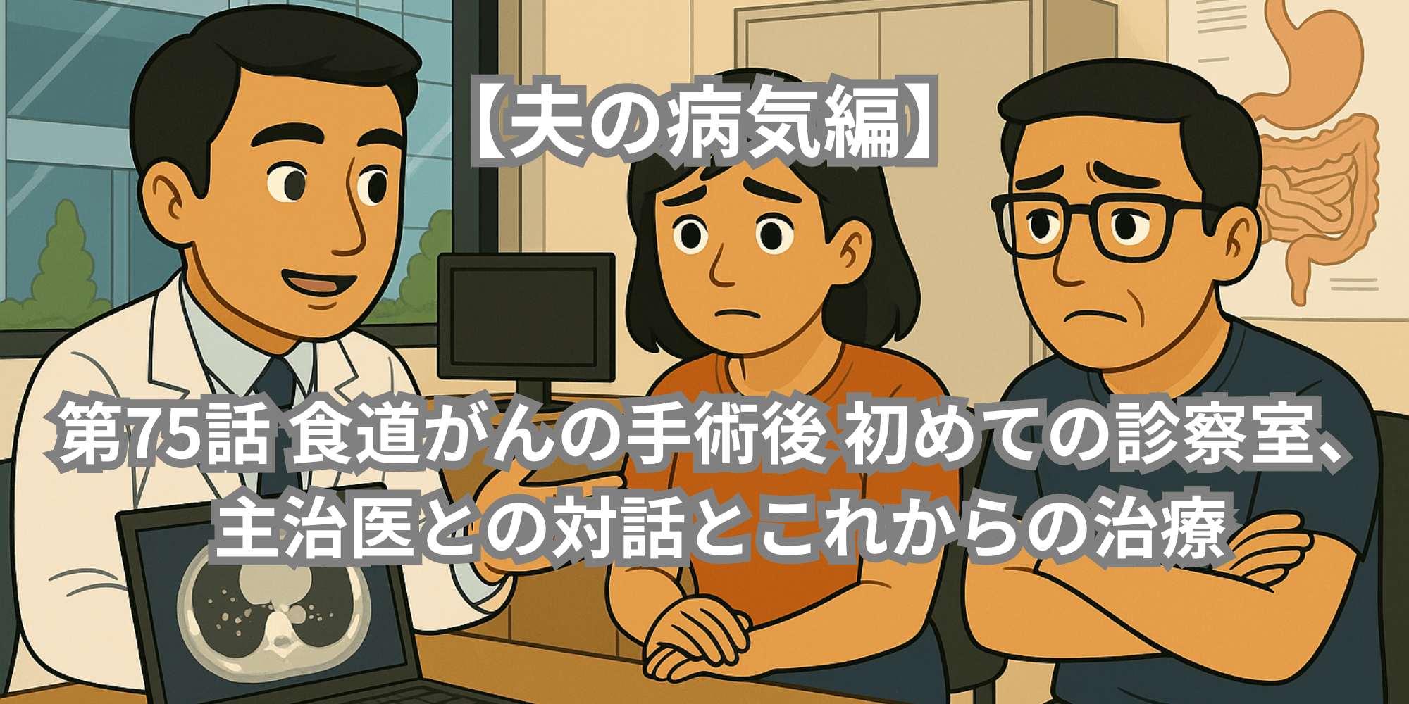 ※本記事は夫の食道がんの体験をもとに記しています。同じ病名でも症状や治療法、経過は人によって大きく異なります。診断や治療に関する判断は、必ず主治医や専門医にご相談ください。