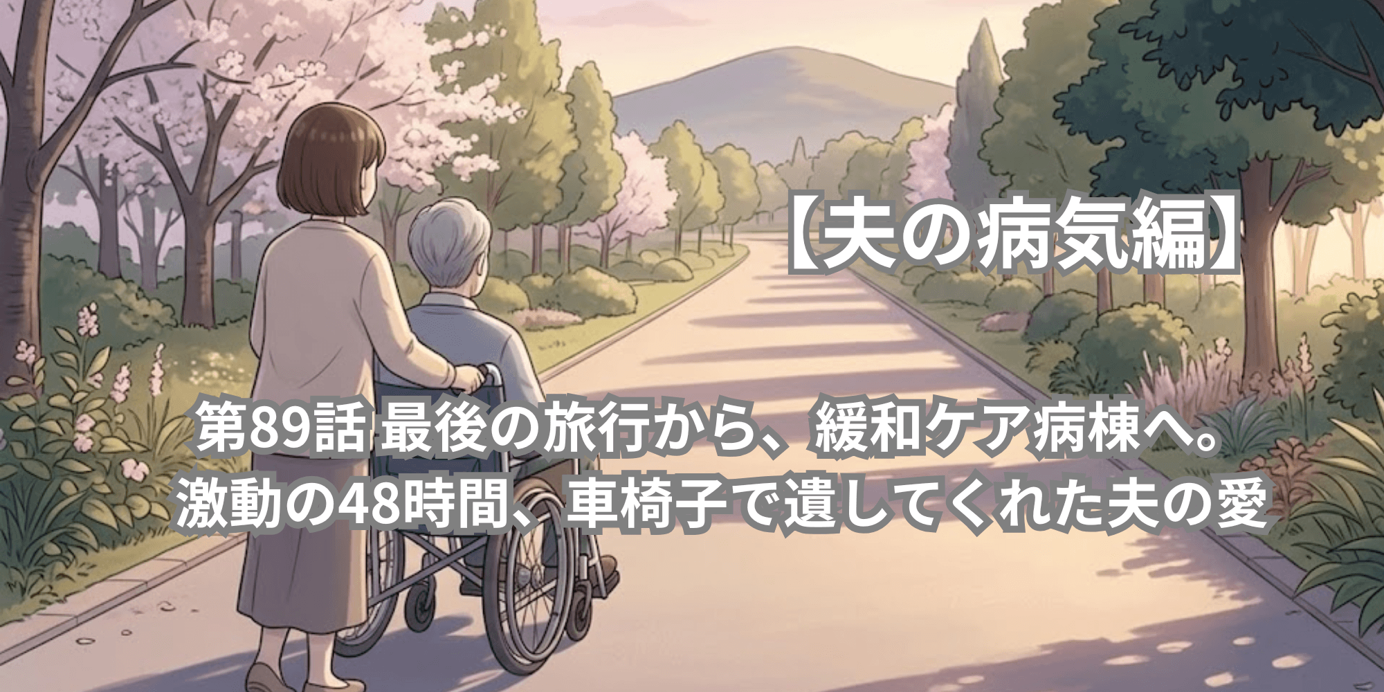 【夫の病気編:第38話】最後の旅行から、緩和ケア病棟へ。激動の48時間、車椅子で遺してくれた夫の愛